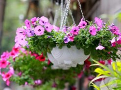 - Hoặc trồng trong các chậu hoa treo một mình hoặc phối với các loại hoa khác làm sống động một góc ban công cho mùa hè rực rỡ.